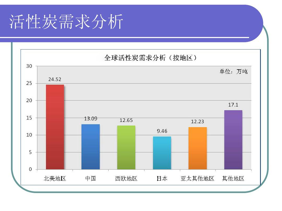 全球活性炭區(qū)域消費分布:中國、美國、歐盟和日本是活性炭的主要消費區(qū)域